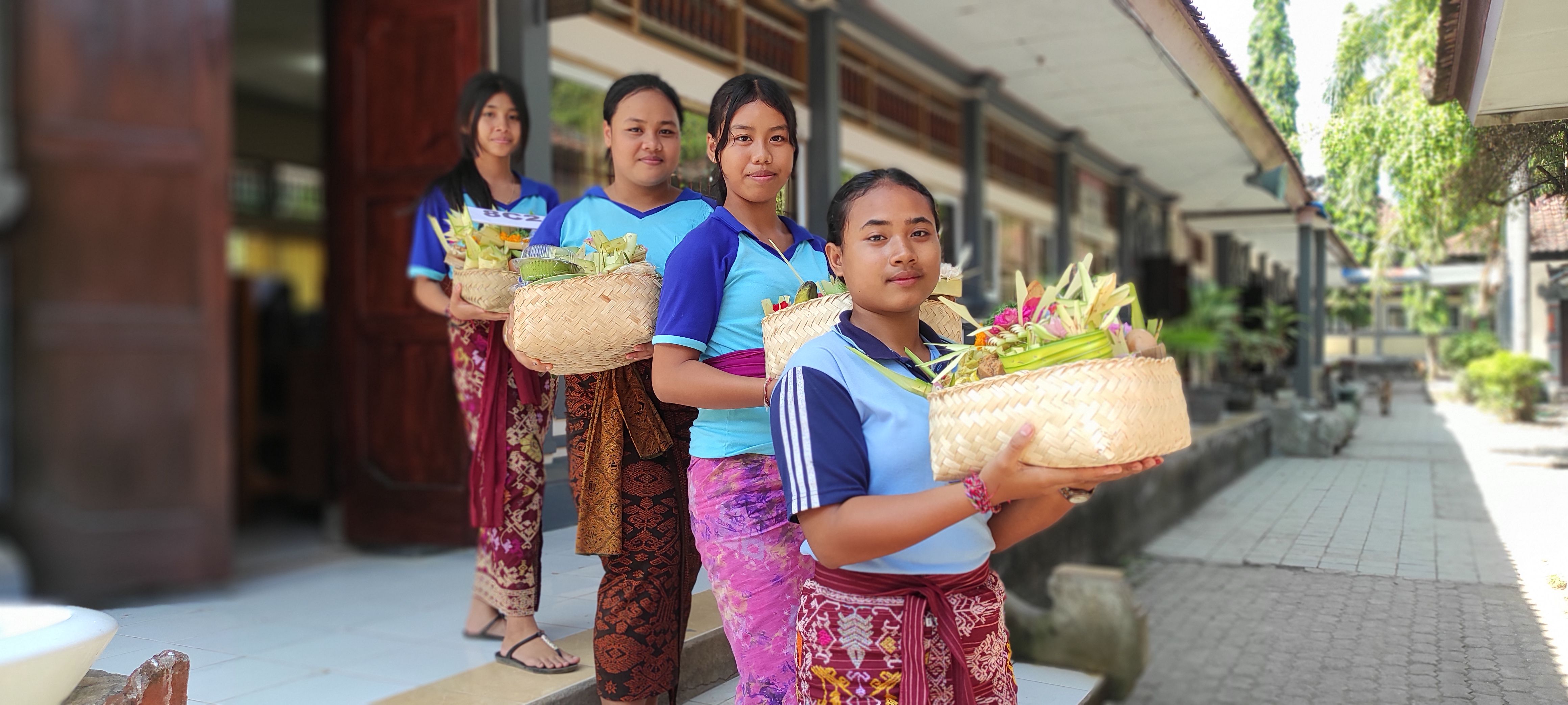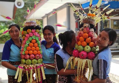 Pajegan atau Gebogan adalah suatu bentuk persembahan berupa susunan dan rangkaian makanan termasuk juga buah-buahan dan bunga-bungaan. Umumnya dibawa dan ditempatkan dipura dalam rangkaian upacara Panca Yadnya. Pejati berasal dari kata jati yang dalam bahasa Bali berarti sungguh-sungguh. Kata 'jati' mendapat awalan 'pa' sehingga kata pejati dimaknai sebagai wujud kesungguhan seseorang. Canang sari adalah upakāra (perlengkapan) keagamaan umat Hindu di Bali untuk persembahan tiap harinya. Persembahan ini dapat ditemui di pelbagai pura, kuil, tempat sembahyang kecil di rumah-rumah, dan di jalan-jalan sebagai bagian dari sebuah persembahan yang lebih besar lagi. (https://id.wikipedia.org/)